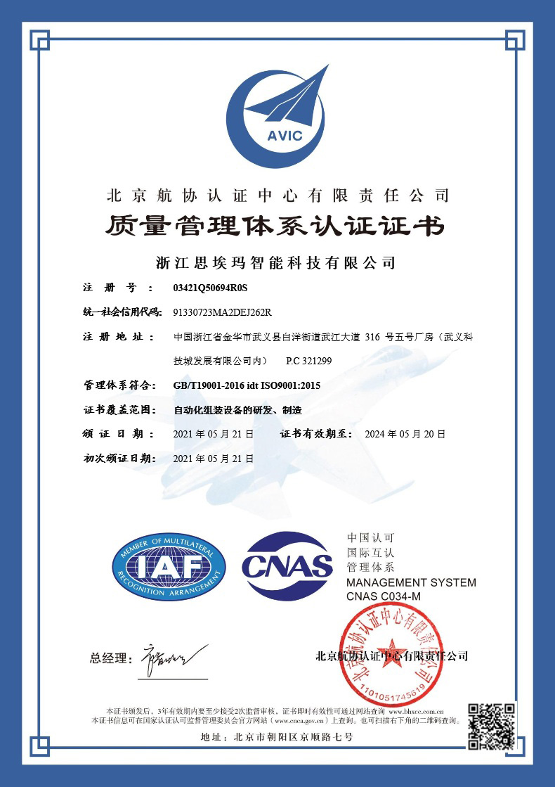 2021年 產品通過ISO9001體系認證