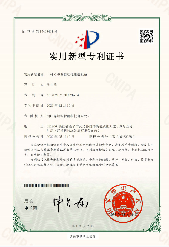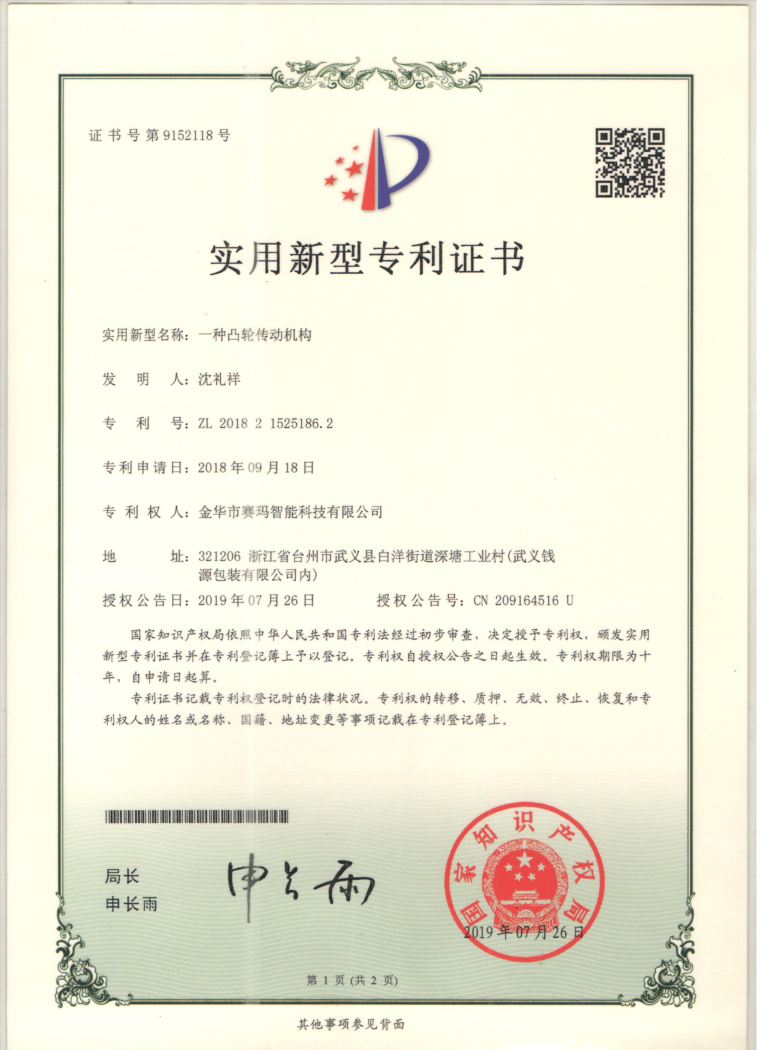2019年 獲得含“齒輪壓裝機”鎖螺絲機”在內的多項項國家發(fā)明專利